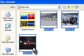 Označite fotografije in kliknite na gumb Uvozi, da jih boste dodali. Držite tipko CTRL in klikajte na datoteke, ki ji želite posamično določiti. |