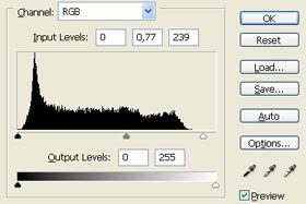 Jaz sem določil input Levels: 0 - 0,77 - 239. Kliknite na gumb OK. |