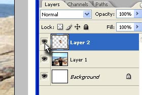 Pri paleti layerjev kliknite na oko pri layerju z glavo (glej sliko), da ga boste skrili. |