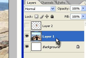 Potem pa označite layer, kjer se nahaja fotografija, kamor dodajate novo glavo.