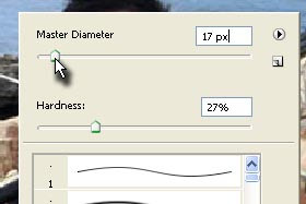 Jaz sem določil Master Diameter 17 px in Hardness 27 %. Pritisnite tipko ESC, da zaprete okno. |