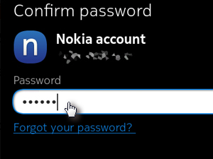 Zaradi vaše varnosti vnesite geslo vašega Nokia računa in potrdite.