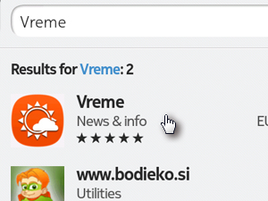 V polje za iskanje vpišite Vreme in pritisnite na gumb Search.