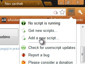 Za dodajanje gumba bomo uporabili dodatek za Google Chrome Tampermonkey. Če ga še nimate si ga lahko prenesete iz Chrome Web Store.