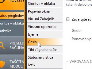 Določite še kateri deli programa naj bodo zavarovani z geslom.