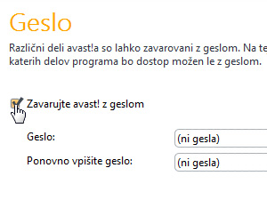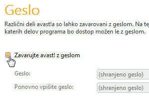 Geslo iz antivirusnega programa avast! odstranite tako, da ponovno sledite 4. koraku ter odstranite kljukico pri Zavarujte avast! z geslom.