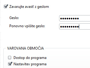 avast! Antivirus lahko zaščitite z geslom in s tem drugim uporabnikom, ki ne poznajo gesla, onemogočite spreminjanje določenih nastavitev ter morebiten izklop zaščite.