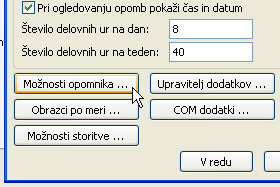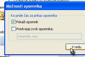 Možnost opcija Predvajaj zvok opomnika naj ne bo označena (glej sliko). Kliknite na gumb V redu. Potem še dvakrat potrdite na gumb V redu, da zaprete vsa okna z možnostmi. |