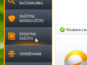 Odprite avast! Antivirus ter v levem meniju izberite Dodatna zaščita.