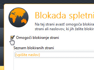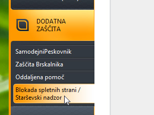 Za vklop starševskega nadzora oz. blokado spletnih strani dodajte kljukico pri Omogoči blokiranje strani.