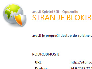 Če sedaj poskusite obiskati spletno stran, ki ste jo blokirali, se vam v brskalniku prikaže opozorilo spletnega ščita programa avast! Antivirus, ki sporoča, da je ta stran blokirana.