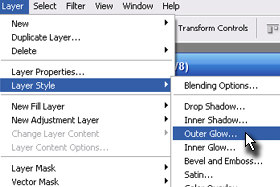 Kliknite zgoraj na Layer, Layer Style in izberite Outer Glow...