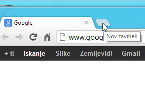 Za odprtje novega zavihka kliknite na gumb Nov zavihek na vrhu okna, kjer se nahajajo odprti zavihki.