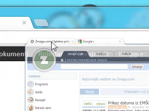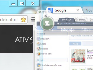 Primite zavihek oz. več zavihkov, tako da kliknete nanj/nanje z levo miškino tipko ter jo pridržite in zavihek oz. skupino zavihkov potegnite navzdol. Prenesel/prenesli se bodo v novo okno.