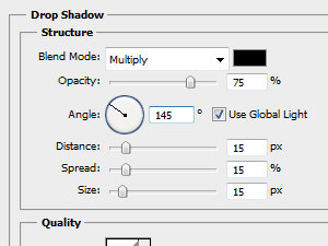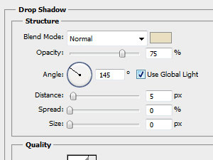 Kliknite zgoraj na Layer, Layer Style in izberite Drop Shadow... V novem oknu nastavite podobne vrednosti kot jaz. Ne zaprite še okna ... |