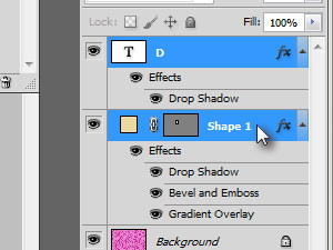 Sedaj bi morali imeti dva layerja, enega za črko in enega za obliko domine.