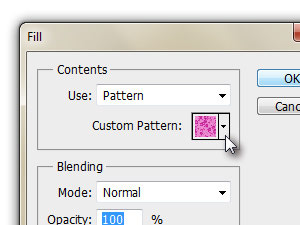 V novem oknu Use preko izbirnika določite Pattern in nato spodaj v oknu Custom Pattern določite prej shranjenega. Kliknite na gumb OK. |