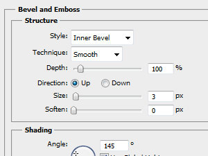 Kliknite na to na Bevel and Emboss ter nastavite podobne vrednosti kot jaz.