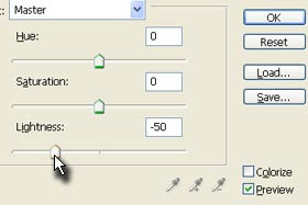 Nastavite z drsnikom Lightness -50. Lightness lahko nastavljate poljubno. Kliknite na gumb OK. |