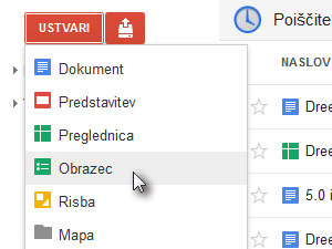 ![]() Odprite Google Drive in ustvarite nov Obrazec. |