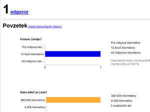 ![]() Google Drive vam bo grafično prikazal povzetek odgovorov za vsa vprašanja. |
