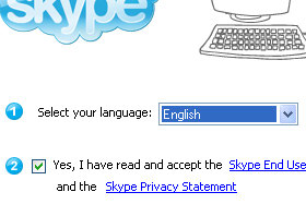 Select your launguage določite English (slovenski jezik še ni podprt). Označite Yes, I have read and accept the Skye End User Licence Agreement and the Skype Privacy Statement. Počakajte še malo... |