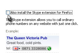 Jaz nisem označil Also install the Skype extension for Firefox (glej sliko). Kliknite na gumb Start Skype. |