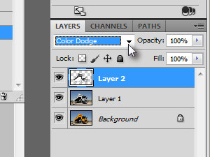 Nato pa temu layerju določite senčenje na Color Dodge (glej sliko).