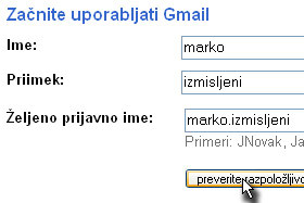 Kliknite na gumb preverite razpoložljivost, preden nadaljujete. Priporočam vam, da za prijavno ime uporabite ime in priimek (glej sliko). |