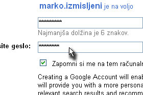 Ko vam sistem javi, da je uporabniško ime na voljo, vpišite dvakrat isto geslo z najmanj 6 znaki.