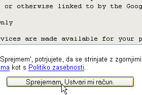 Kliknite na gumb Sprejemam. Ustvari mi račun. |