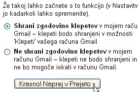 Prikaže se dodatna možnost klepeta znotraj gmail-a.