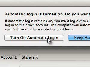 Če imate vklopljeno avtomatsko prijavo, potek kliknite gumb Turn Off Automatic Login.