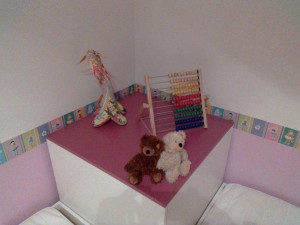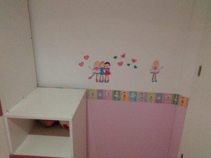 Potem smo dodali še nalepke, ki popestrijo celotno sobo.
