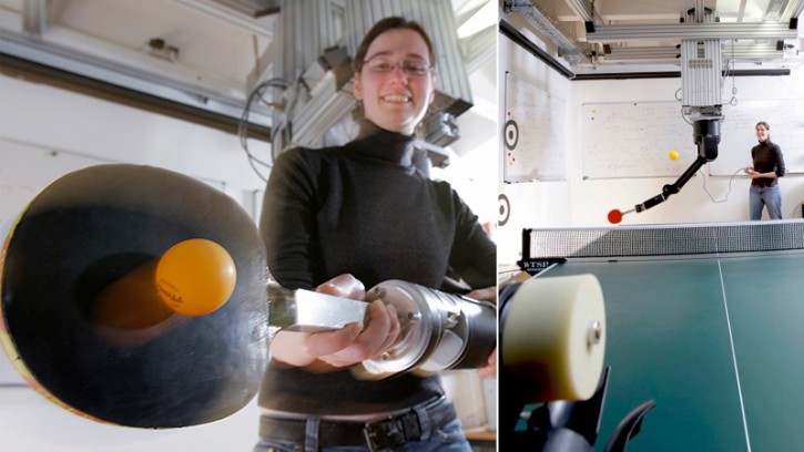 Na nemški tehnični univerzi v mestu Darmstadt so neko obstoječo robotsko roko opremili z kamero, ki vidi celotno igralno površino namiznega tenisa in jo nato programirali, da si je zapomnila človeške gibe. Robotsko roko so namreč med samo igro namiznega tenisa fizično usmerjali, da si je zapomnila najbolj pogoste udarce. Potem so robotsko roko pustili samo, da je začela na podlagi spomina trenirati sama in udarcev, ki jih prej ni poznala, je s pomočjo improvizacije poizkušala ubraniti.