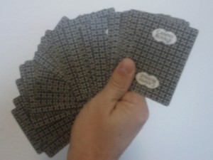 Najprej drugi osebi ponudimo, naj izbere poljubno karto.
