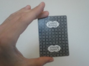 ![]() Zaradi večje učinkovitosti trika, ko boste že vedeli, katera je izbrana karta, še nekaj časa malo manj intenzivno prepogibajte karto ter se pretvarjajte, kot da še vedno skušate razbrat, katera karta je. |