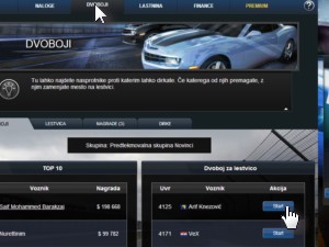 Najprej izberemo zavihek dvoboji, nato pa poiščemo voznika in kliknemo Start. Nato še lahko pregledamo karakteristike nasprotnika in če menimo da ga lahko premagamo stisnemo še enkrat start.