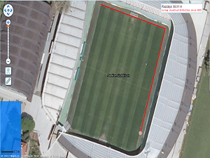 Izmerjen obseg igrišča na Ljudskem vrtu je 347.60 m v resnici pa ima igrišče obseg 346 m.