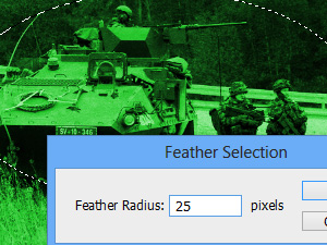 V novem oknu Feather Radius določite okoli 25 pixels in kliknite na gumb OK.