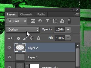 Potem pa layerju določite senčenje na Darken (glej sliko). Kliknite na Select in izberite Deselect, da odstranite selekcijo.