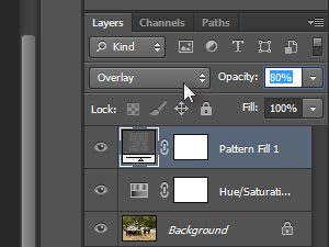 Layerju določite senčenje na Overlay in Opacity na okoli 80% (glej sliko).