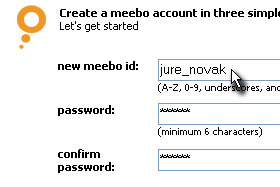 V polje new meebo id vpišite poljubno uporabniško ime.