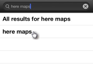 V polje za iskanje vpišite here maps in nato pritisnite na here maps v iskalnih zadetkih spodaj.