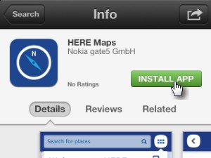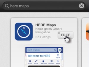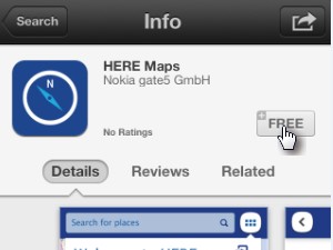 Prikaže se vam HERE Maps aplikacija, kjer pritisnite na FREE gumb, da jo boste namestili ...