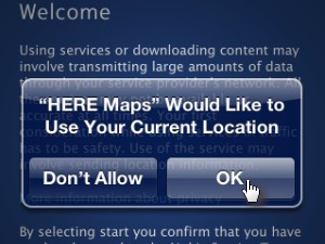 Pritisnite na OK, da bo lahko aplikacija uporabljala vašo trenutno lokacijo.