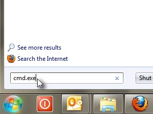Kliknite gumb Start in v iskalno polje vpišite cmd.exe.