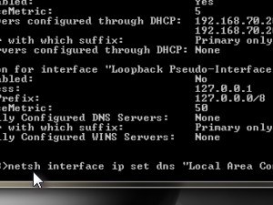 netsh interface ip set dns "Local Area Connection" static 8.8.8.8 Če pa želimo podatke za DNS strežnik pridobiti od DHCP strežnika, pa uporabimo naslednji ukaz: netsh interface ip set dns "Local Area Connection" dhcp |