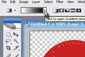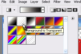 Gradient Tool mora biti označen, da bodo zgornja orodja prikazana. |