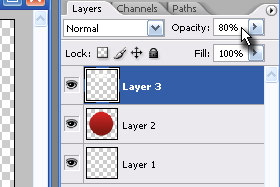 Nastavite layerju z elipso (zgornji layer, glej sliko) Opacity 80 %. |